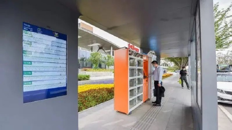 這種智慧候車亭,寬敞的候車亭內配備有供市民休息的座椅,還有自動售貨機、電子借書機、便民服務機、LED宣傳屏、一鍵報警裝置等。